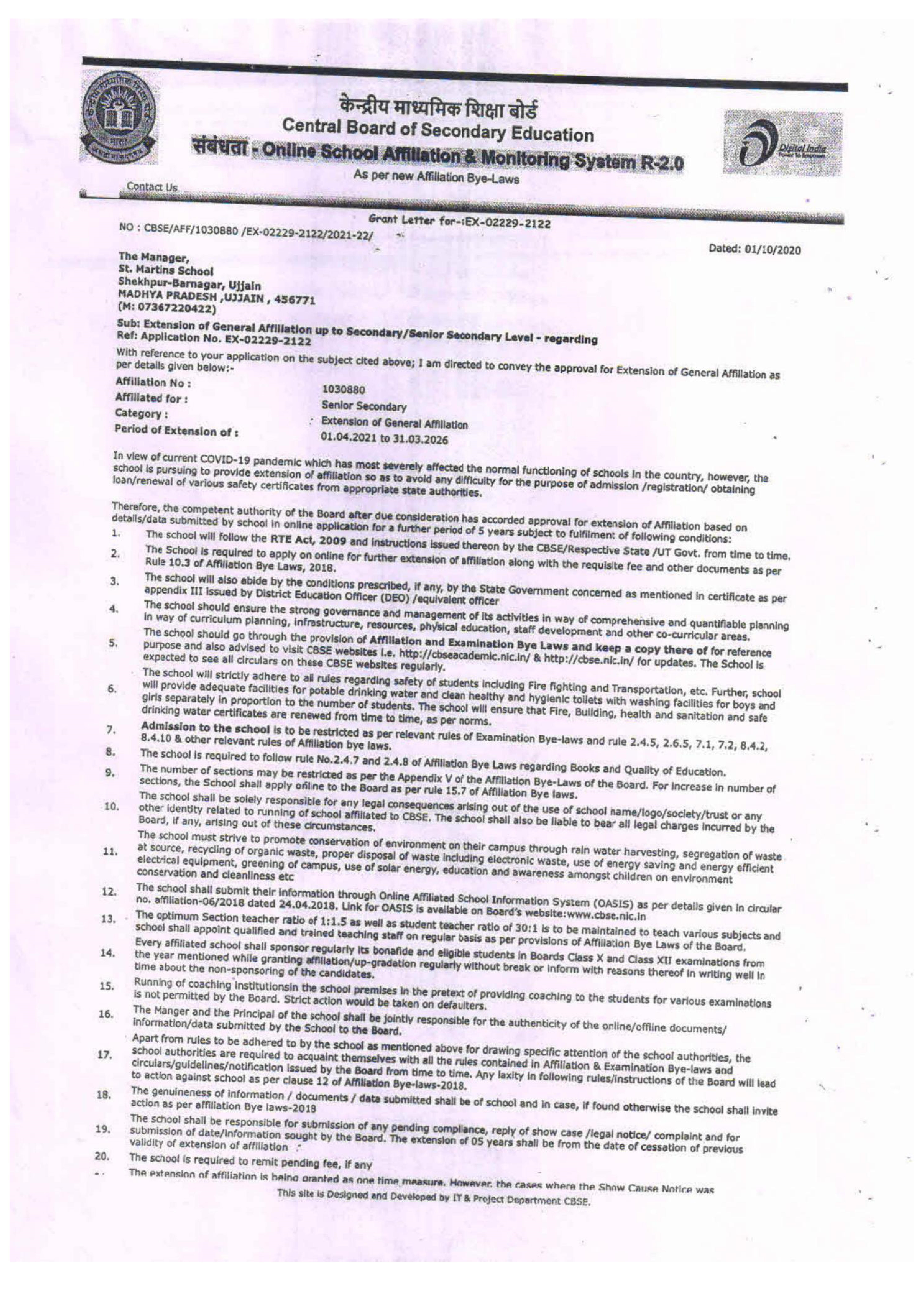 Affiliation Certificate